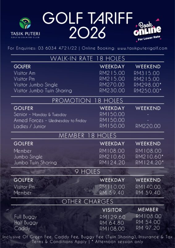 RM215.00 | GREEN FEES, BUGGY, CADDY & INSURANCE | |